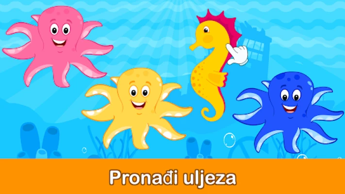 Zaronite s vašim djetetom u čarobni podvodni svijet gdje se mašta susreće s učenjem! Aplikacija Igre za Mališane od 2, 3, 4 godina stvorena je da oduševi vaše mališane živopisnim bojama, neodoljivim likovima i zabavnim animacijama. Dok istražuju oceanske dubine, upoznat će se s razigranim ribicama, elegantnim kornjačama, tajanstvenim sirenama i mnogim drugim morskim bićima. Otputujte brodovima, otkrijte skrivene škrinje s blagom i isprobajte gusarske šešire u interaktivnom okruženju koje potiče kreativnost i rani razvoj. Gledajte kako njihova znatiželja raste iz dana u dan!